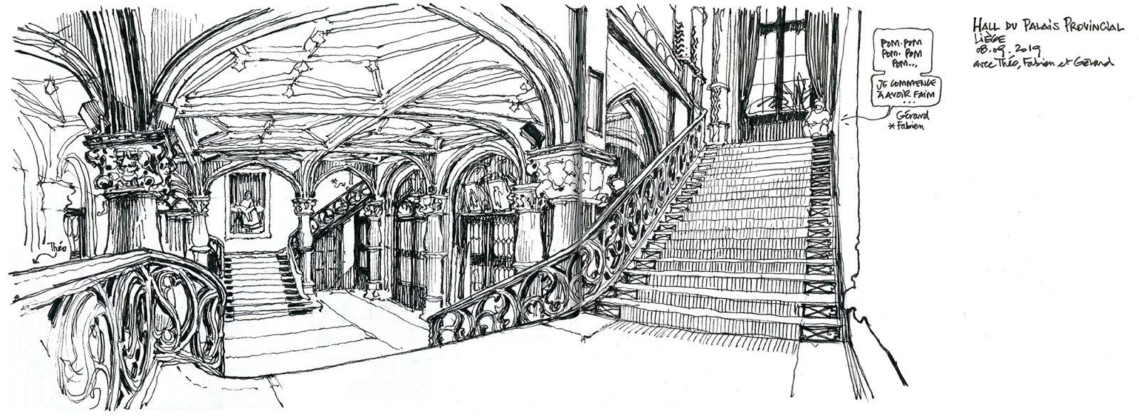 This December I had the opportunity of drawing a panoramic view of the Unesco Heritage District of Luxembourg-City seen from the terrace of the Lëtzebuerg City Museum.